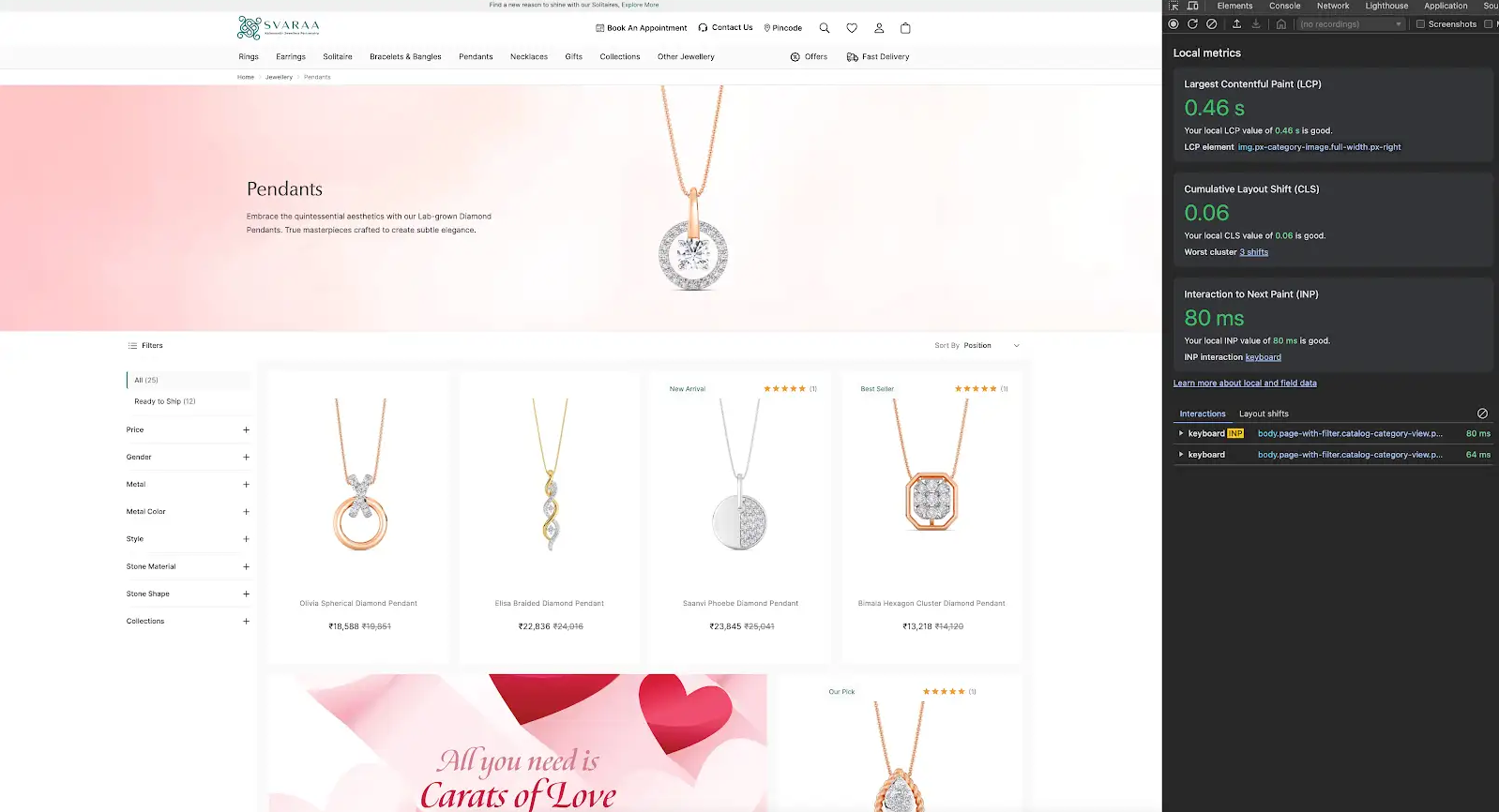 However, jewelry is an industry characterized by vast product catalogs and numerous attributes: sizes, prices, metal types, gemstone types, decorative elements, and many more. In the digital realm, all this can translate into poor product discoverability and slow filtering performance which can frustrate jewelry shoppers and lead to lost sales.