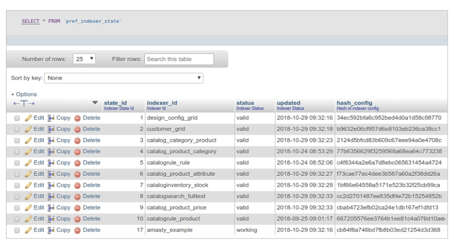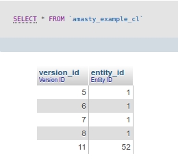 While launching it by indexer_clean_all_changelogs (every hour), the _cl tables (in our example it’s amasty_example_cl) indexers will be purged of entries with version_id below the latest version in the mview_state table.