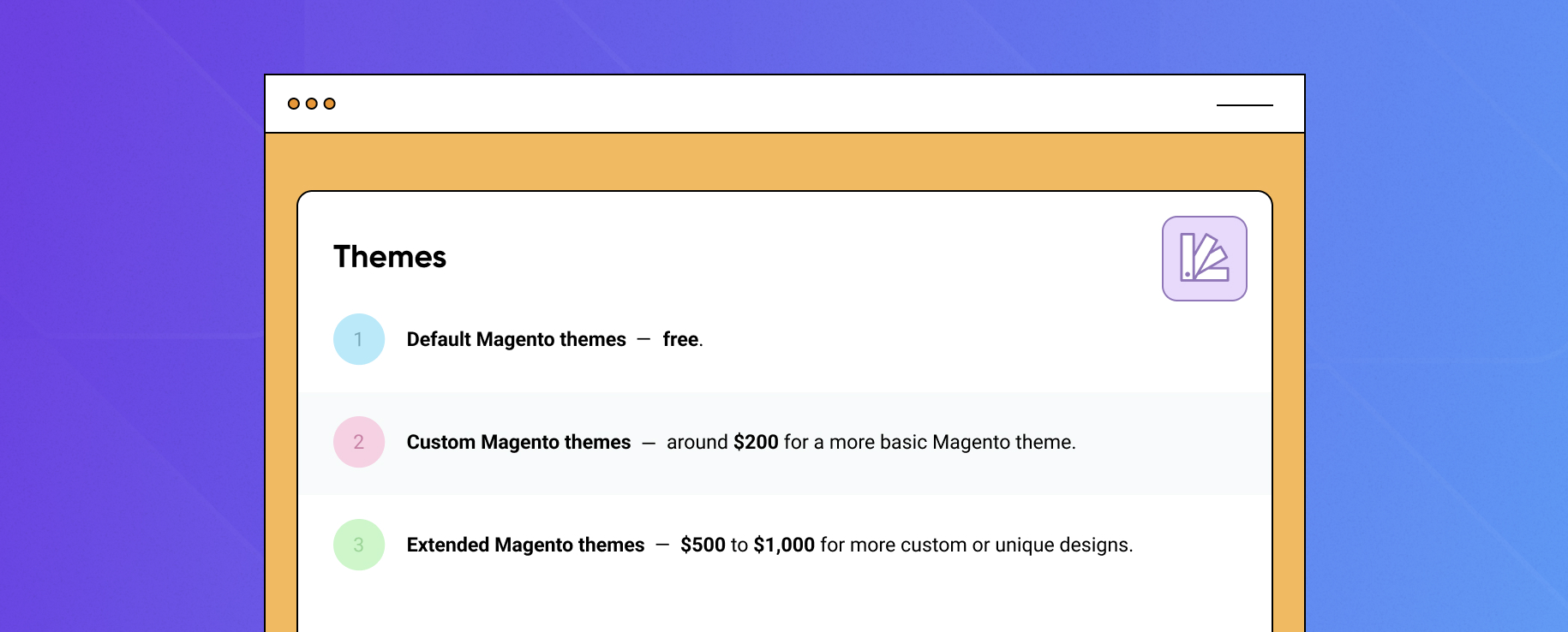 The cost of a custom Magento theme can vary depending on the specific design and features you need. While Magento offers free themes, you can expect to spend around $200 on a quality Magento theme.