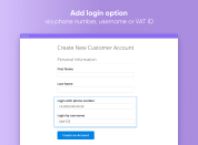 Effortlessly add a customizable login option via a phone number, username or VAT ID to the registration page in your store. You can also add hints to show how to enter required values correctly and make the login process more comfortable for customers.