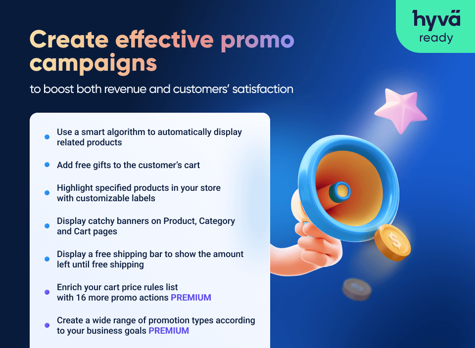 The extension analyzes what products people buy more often or explore with the chosen ones and what products a user has already bought. This way, it recommends to people the products they want to buy. Moreover, you can stimulate customers to buy right and now by creating a promotion campaign with free shipping.
