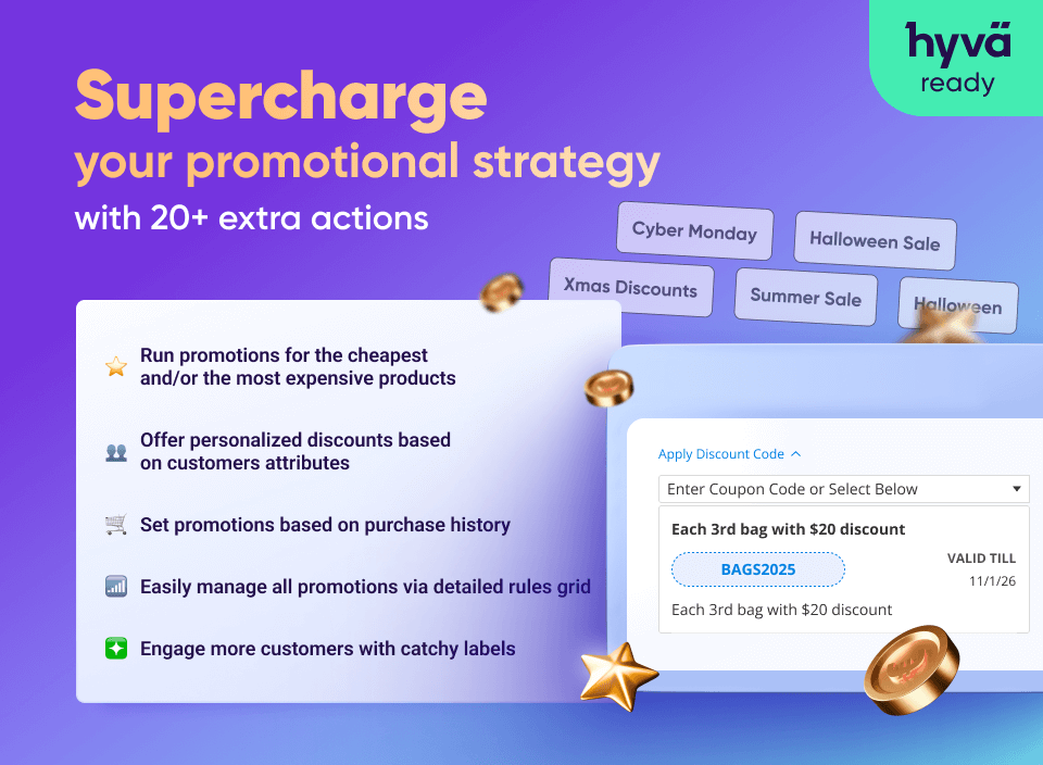 This group of actions includes promotions connected with two different products - users buy one and get another Magento 2 product in the store with special price.
